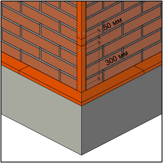 Фиксация нижнего углового элемента brick