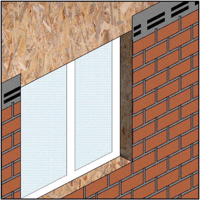 Монтаж фасадной плитки над оконным проёмом brick