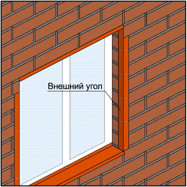Обрамление оконного проёма при помощи внешнего угла (тип 2, таблица 2) brick